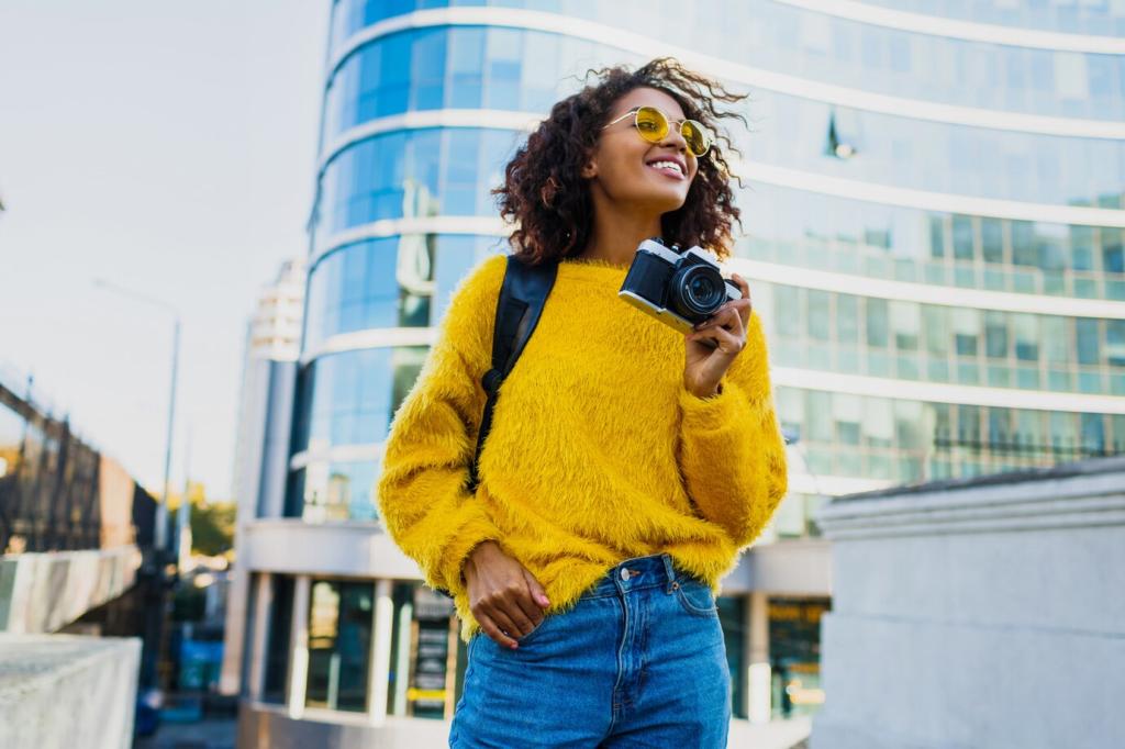 Zur Goldenen Stunde umarmen warme Töne die Stadt, bei Blaue Stunde singen kühle Blauwerte mit orangefarbenen Lichtern. Platziere warm-kalt-Kontraste gezielt, damit Motive herausleuchten. Zeige uns zwei Versionen und frage nach dem emotional stärkeren Farbklang.